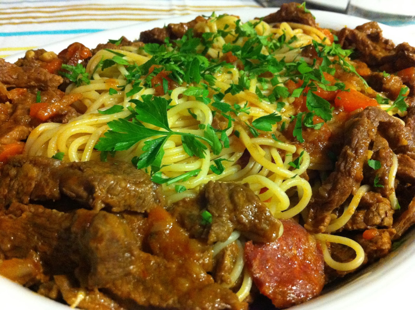 Para acompanhar, arroz branco, massa ou um bom puré de batata.